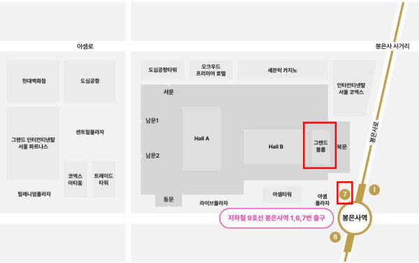 *그랜드볼룸 근처 주차장은 '코엑스 북문 주차장(게이트4) 입니다.