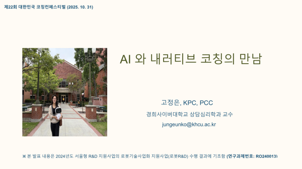 프로그램 안내 세션소개 세션소개 협찬사 협찬내역 지난 코칭컨페스티벌 세션소개 협찬사 협찬내역 지난 코칭컨페스티벌 목록 AI와 내러티브 코칭의 만남 13:30~14:15 진행 고정은(경희사이버대학교)