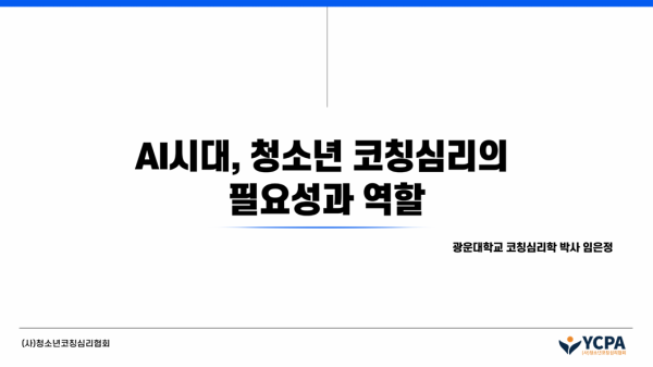 프로그램 안내 세션소개 세션소개 협찬사 협찬내역 지난 코칭컨페스티벌 세션소개 협찬사 협찬내역 지난 코칭컨페스티벌 목록 AI 시대 청소년 코칭심리의 필요성과 역할 13:30~14:15 진행 임은정(청소년코칭심리협회)